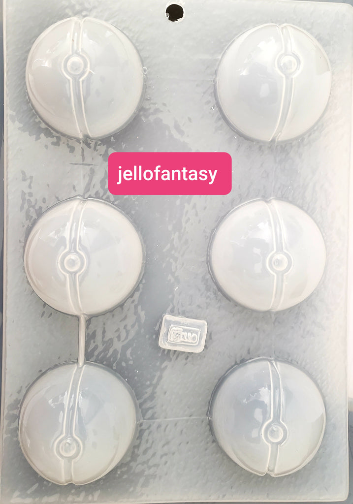 Molde para gelatina en forma de pokebolas capacidad 50 ml medida 2.5" de diametro