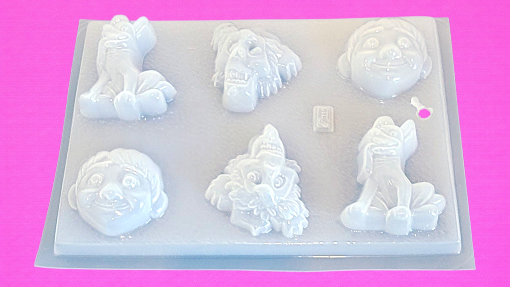 Molde para gelatina en forma de personajes las medidas aproximadas de 3.5"x 3" y una capacidad de 50 mL.