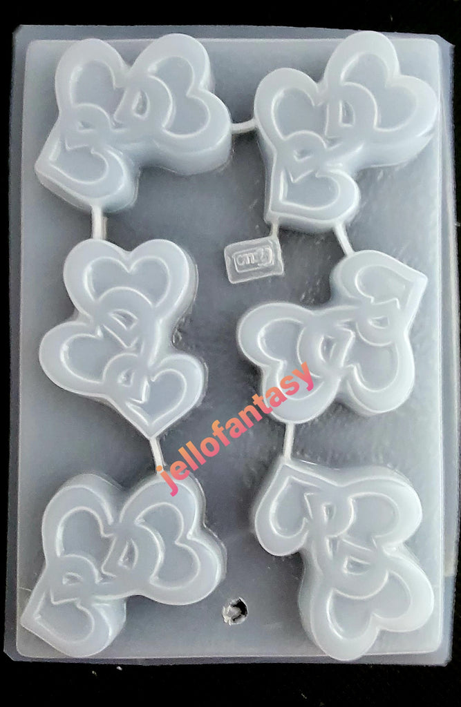 Molde para gelatina en forma de corazones con las medidas aproximadas de 3.5"x 2" y una capacidad aproximada 75 mL.