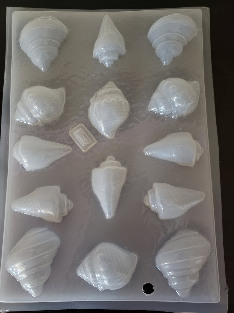 Molde para gelatina en forma de caracoles de mar con las medidas aproximadas de 2"x 1.5" y una capacidad de 15 mL.