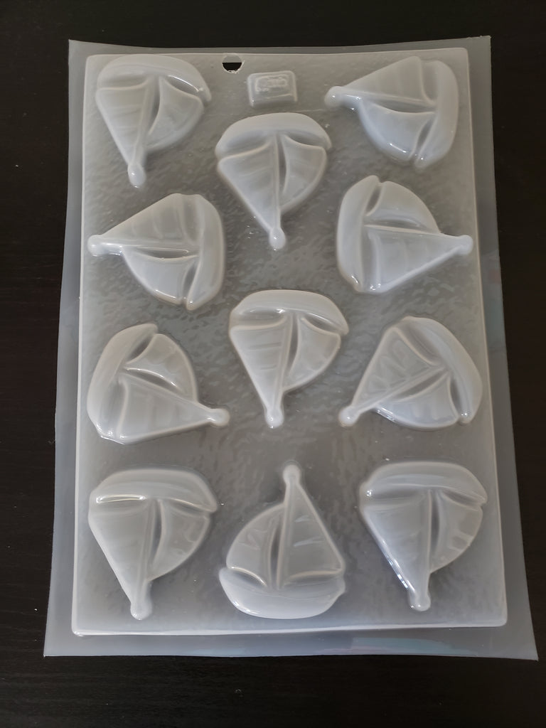 Molde para gelatina en forma de barquitos con las medidas aproximadas de 2.5"x 2" y una capacidad de 25 mL.