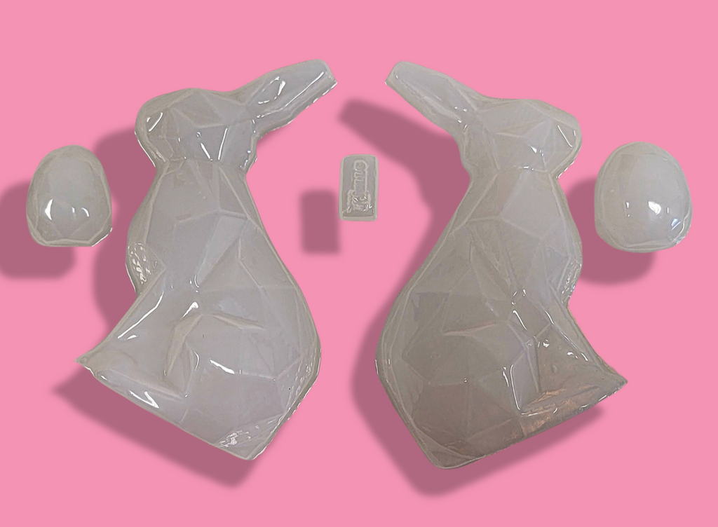Molde para gelatina en forma de conejos y huevos pequenos medida 6" y 1.5"
