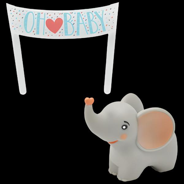Here comes baby! Create an unforgettable and adorable baby shower cake! Elephant is a bath toy for after party fun. 2-Piece Set.