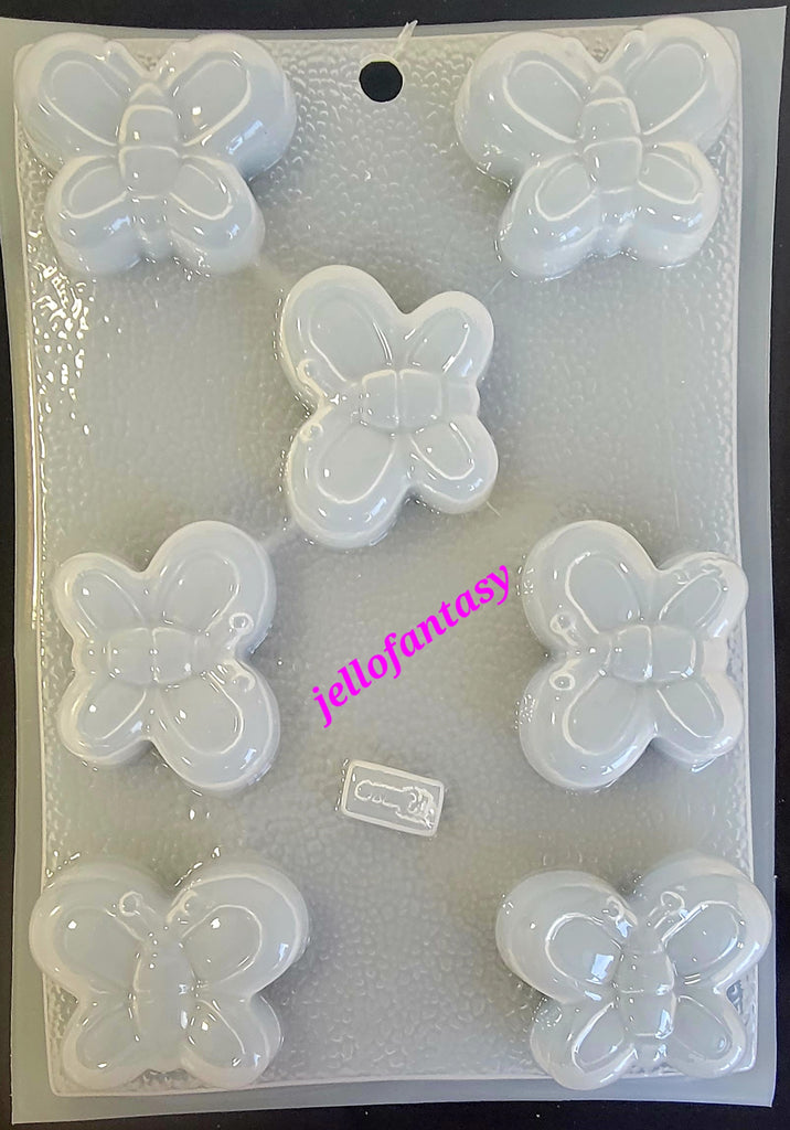 Molde para gelatina en forma de mariposas con las medidas aproximadas de 2.5"x 2" y una capacidad de 45 mL.