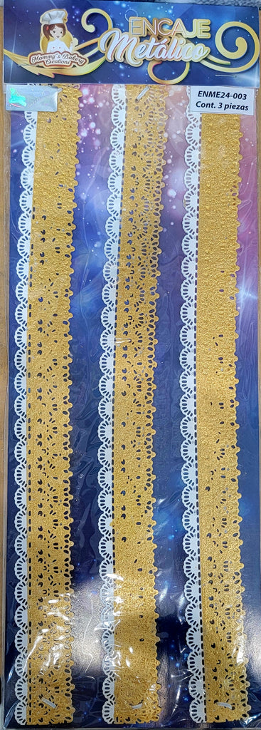 Paquete con 3 piezas encaje de azucar medida 14" x 1.5"