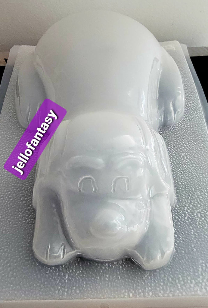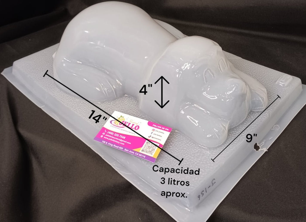 Molde para gelatina en forma de perro liso con las medidas aproximadas de 13.5"x 9" y una capacidad de 3 L.