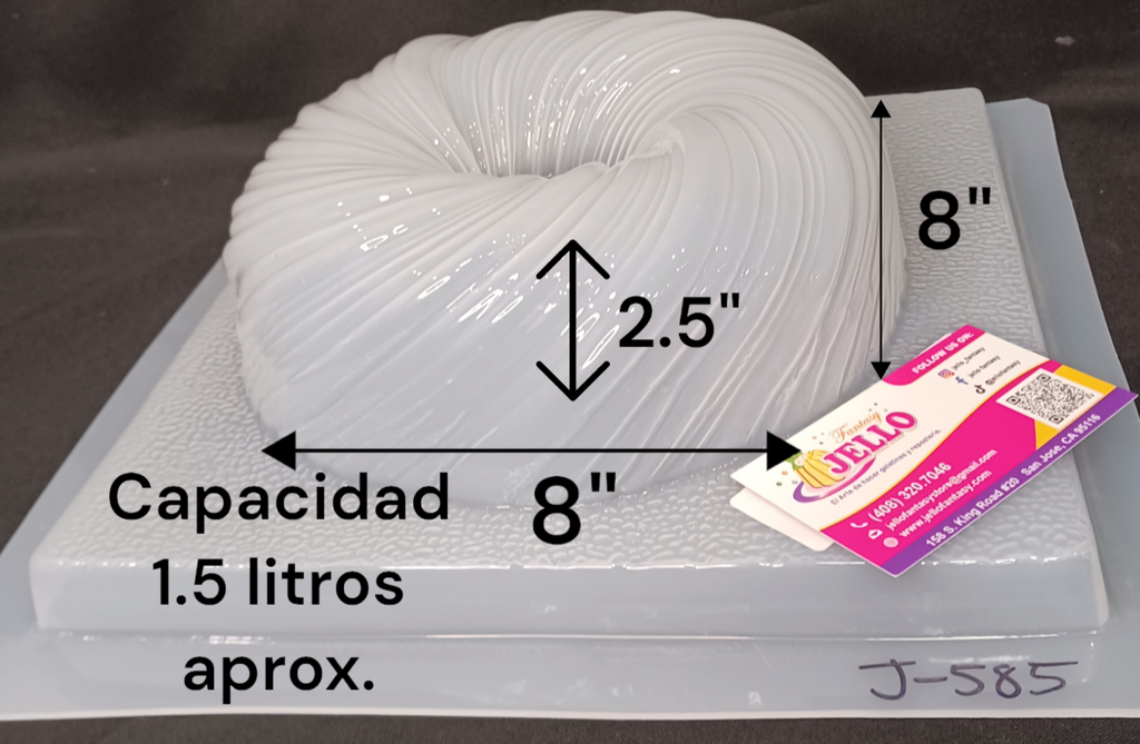 Molde para gelatina en forma redonda Rosca con las medidas aproximadas de 7.5" y una capacidad de 1.5 L