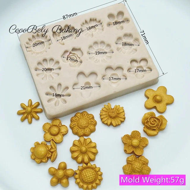 Molde de silicon de diferentes flores medidas aproximadas 0.5"